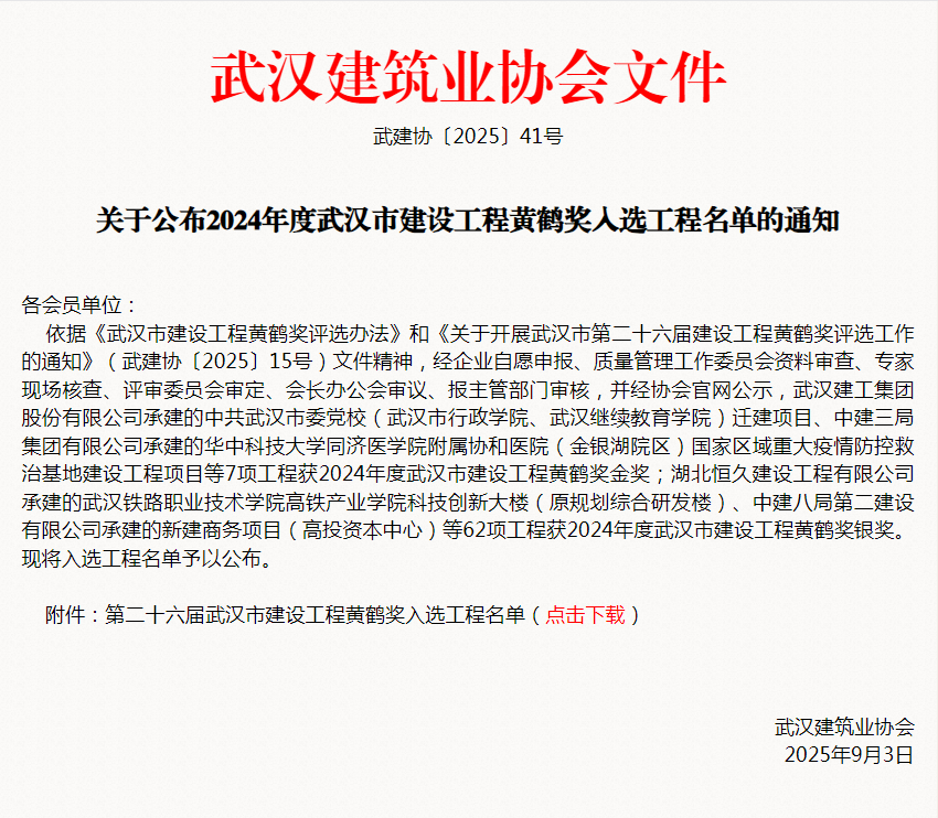 • 再添8項(xiàng)!湖北省建工第五建設(shè)有限公司榮譽(yù)持續(xù)刷新
